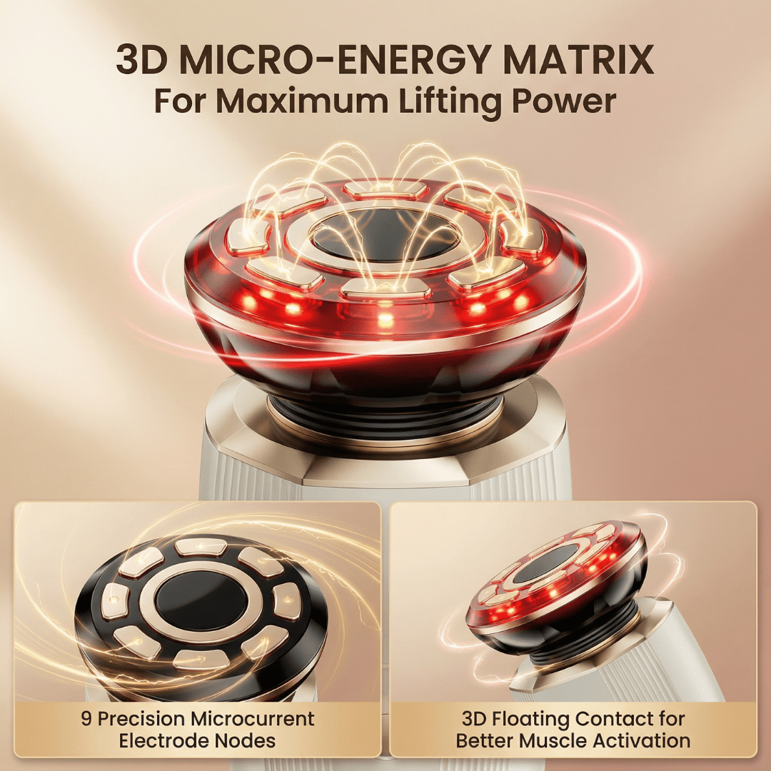 • Lift: Microcurrent (Mode 1) - Re-educates weakened muscles, restoring the "scaffolding" that keeps skin taut